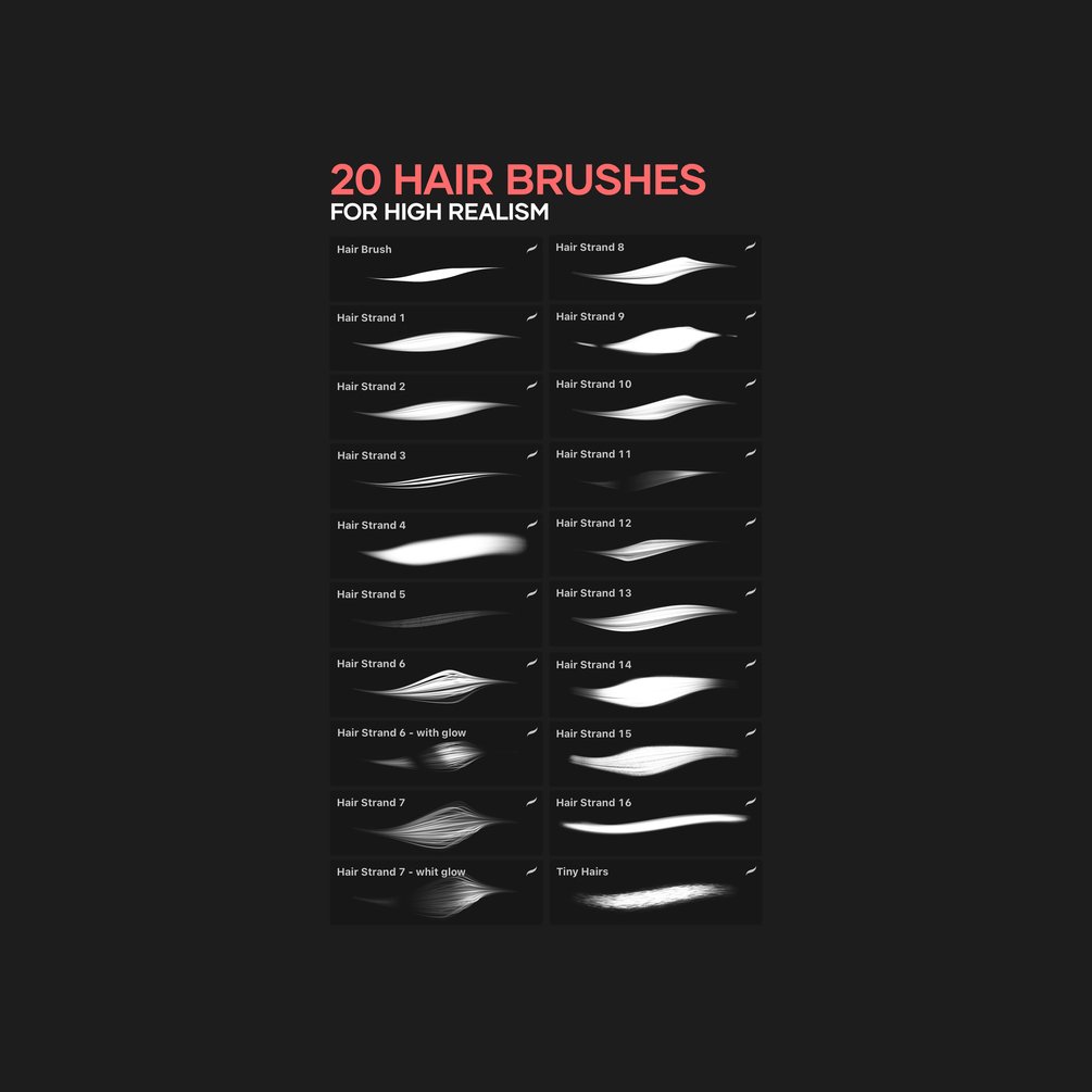 This Set contains all of my 20 hair brushes for realistic looking results.